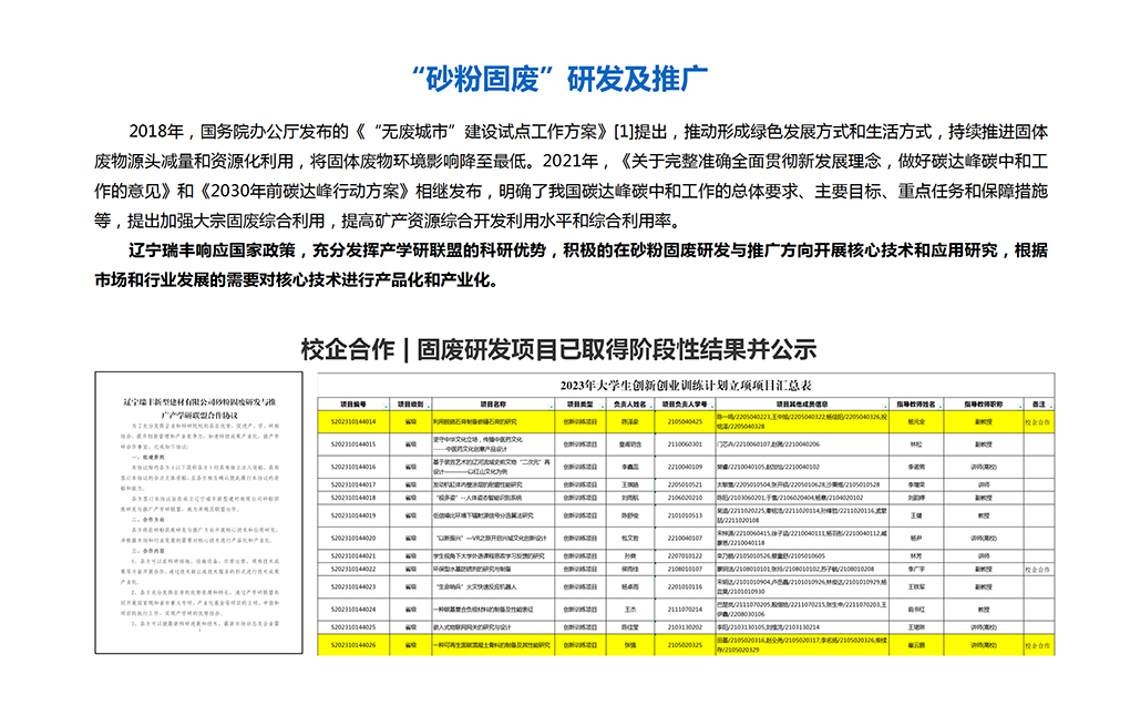 “砂粉固廢”研發(fā)及推廣